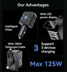 Yesido Y71 Car Charger 125W – 4-in-1 Fast Charging with USB-C, USB-A & Lightning